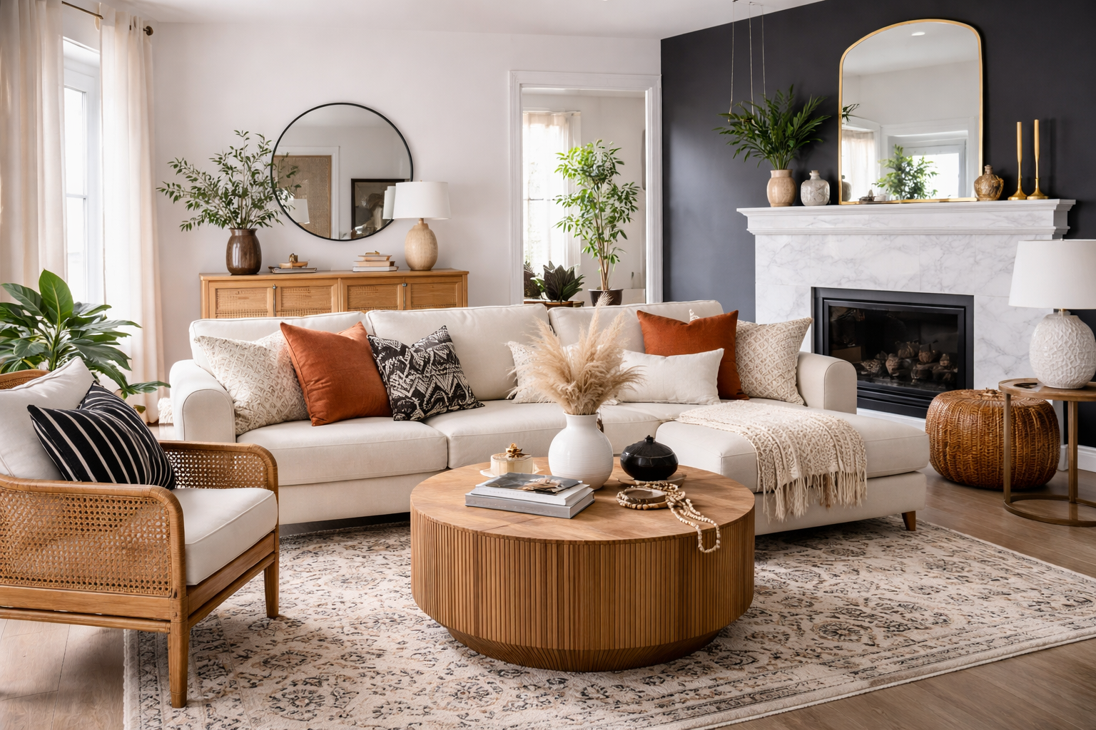 Every room benefits from one or two focal points that draw the eye and establish structure. When blending styles, focal points help prevent visual chaos. Common focal points include: