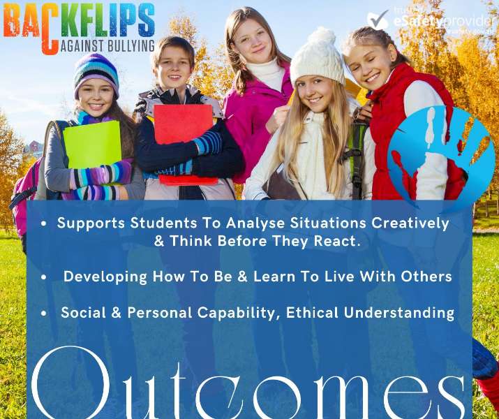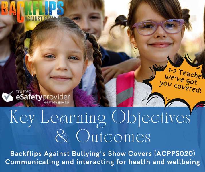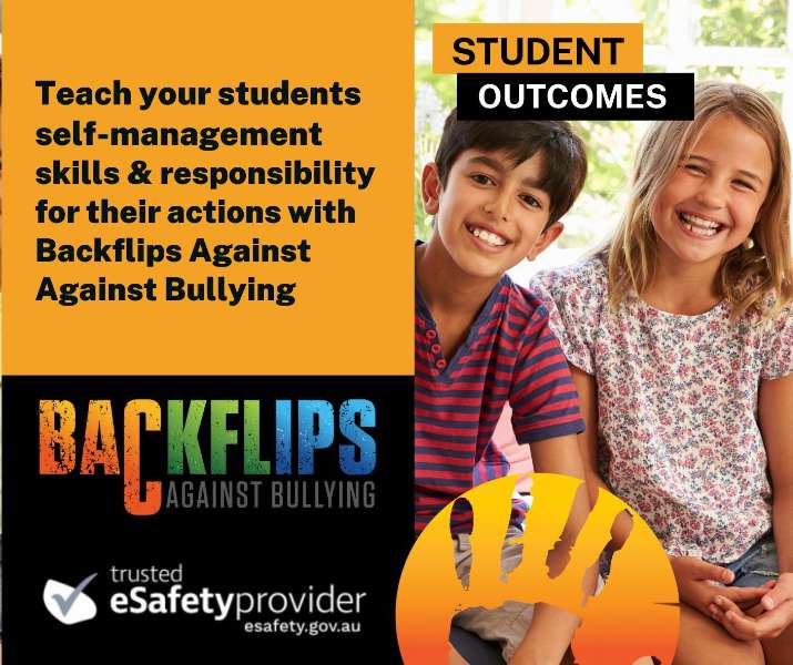 As a registered Trusted eSafety Provider, Backflips Against Bullying - The Anti-Bullying Program is approved by the eSafety Commissioner to deliver online safety education to Australian schools. Backflips Against Bullying, The anti-bullying programs have also been carefully tailored to meet Key Learning Objectives & Outcomes aligned to the Australian Curriculum. Additionally, our anti-bullying programs complement various descriptors in the focus areas of AITSL Australian Professional Standards for Teachers, delivering a beneficial anti-bullying program to reduce bullying amongst your students and match the needs of the faculty that teach them.