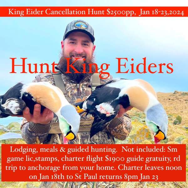 Join Alaska Top King Eider Guides for a King Eider hunt of a lifetime I Aleutian Islands Waterfowlers @ Cold Bay Adventures Lodge