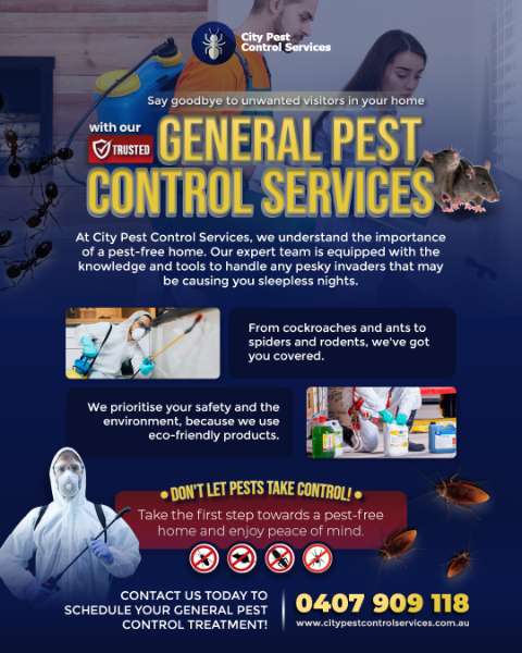 Get rid of pests with City Pest Control Services General Pest Spray in Canberra. Their expert team delivers high-quality service and uses only the best chemicals in Australia.