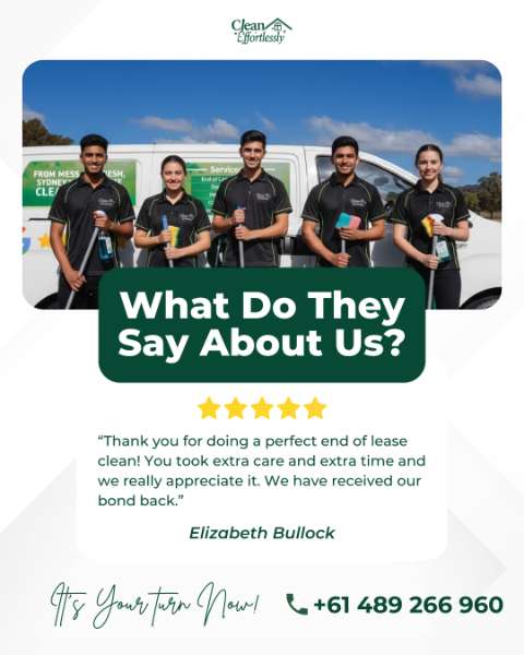 Clean Effortlessly is a trusted commercial and residential cleaning service based in Granville, Sydney NSW, delivering reliable, eco-friendly cleaning with transparent pricing and guaranteed results. We’re proud to offer a 100% Satisfaction & Bond Back Guarantee, including a 72-hour re-clean for bond returns if standards aren’t met.