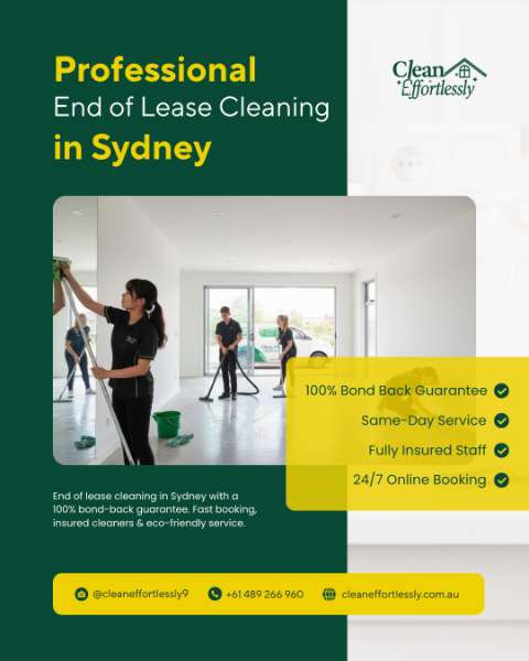 End of lease cleaning in Sydney with a 100% bond-back guarantee. Fast booking, insured cleaners & eco-friendly service for a spotless.