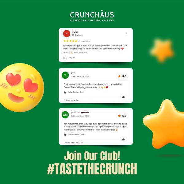 Kamu sedang mencari makanan sehat dan segar? Crunchaus jawabannya! Dapatkan hidangan lezat dan sehat, dengan harga yang terjangkau di Crunchaus!