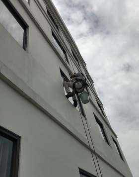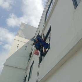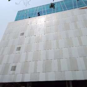 Facade Cleaning merupakan kegiatan membersihkan luar bangunan gedung agar tetap bersih dari debu, polutan dan kotoran yang menempel pada bangunan sehingga perlu perawatan khusus.