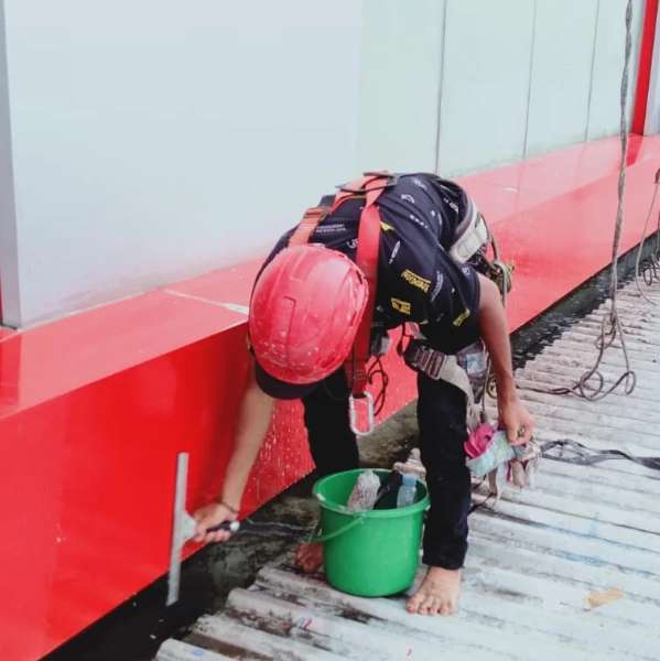 Facade Cleaning merupakan kegiatan membersihkan luar bangunan gedung agar tetap bersih dari debu, polutan dan kotoran yang menempel pada bangunan sehingga perlu perawatan khusus.