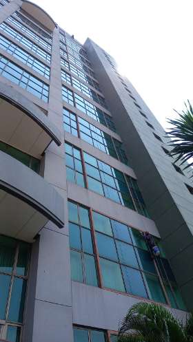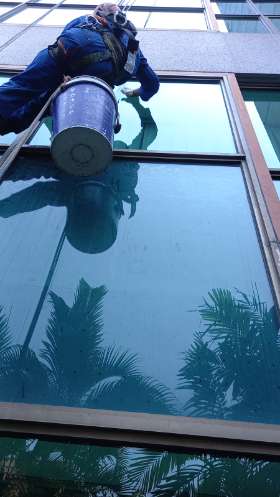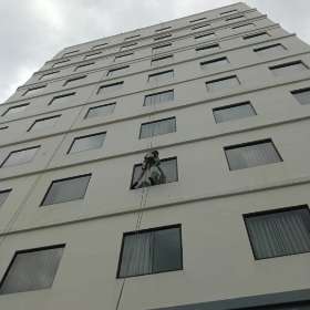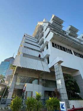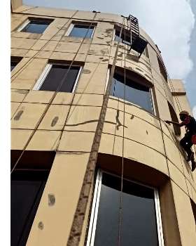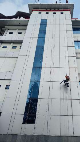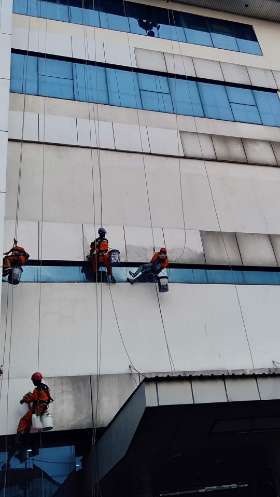 Facade Cleaning merupakan kegiatan membersihkan luar bangunan gedung agar tetap bersih dari debu, polutan dan kotoran yang menempel pada bangunan sehingga perlu perawatan khusus.