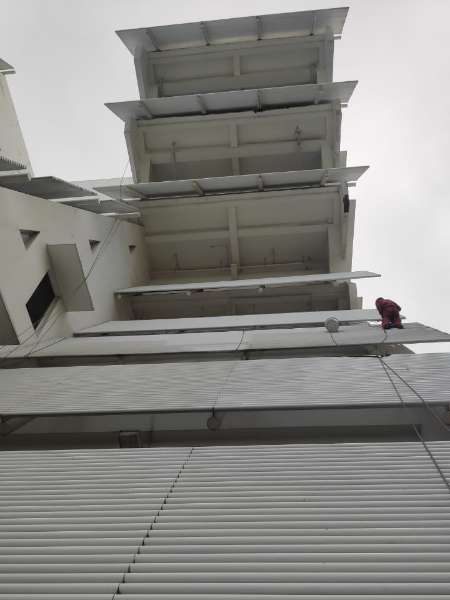 Facade Cleaning merupakan kegiatan membersihkan luar bangunan gedung agar tetap bersih dari debu, polutan dan kotoran yang menempel pada bangunan sehingga perlu perawatan khusus.