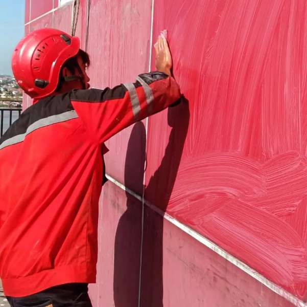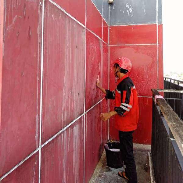 Facade Cleaning merupakan kegiatan membersihkan luar bangunan gedung agar tetap bersih dari debu, polutan dan kotoran yang menempel pada bangunan sehingga perlu perawatan khusus.
