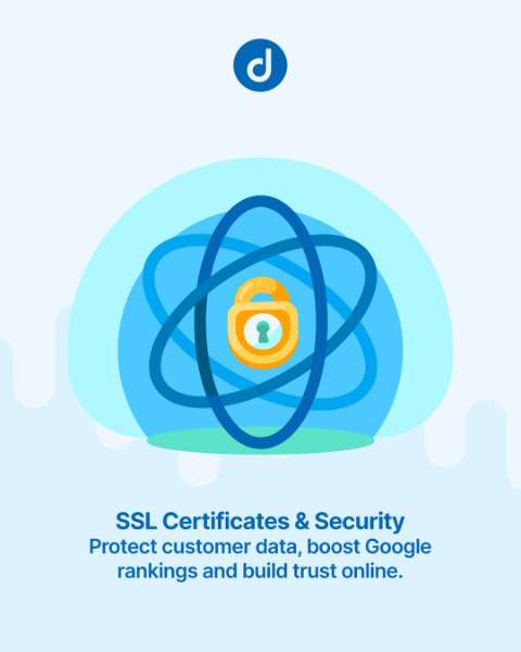 - Security: DV and OV SSL certificates to protect sites and transactions.