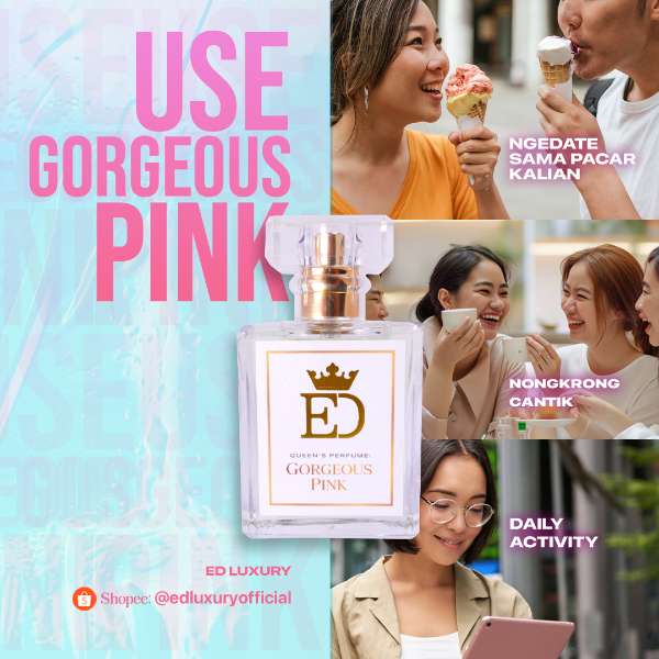 Gorgeous Pink dari ED Luxury menggabungkan kesegaran dari pear blossom dan red berries, keanggunan gardenia dan manisnya brown sugar yang menciptkan kesan wangi mewah segar tak terlupakan.