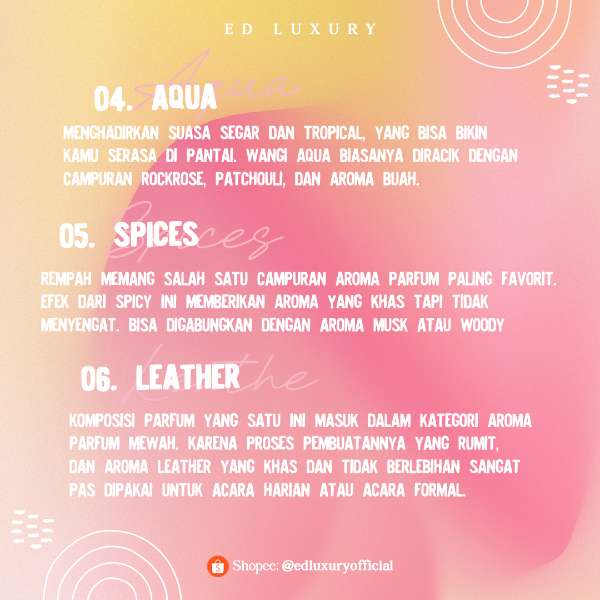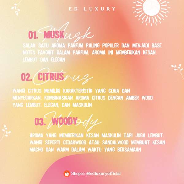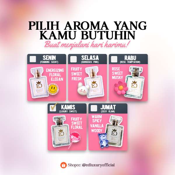 ED Luxury Perfume, setiap semprotan parfum mewah yang kami tawarkan menjadikan setiap momen istimewa penuh dengan keharuman yang tak terlupakan.