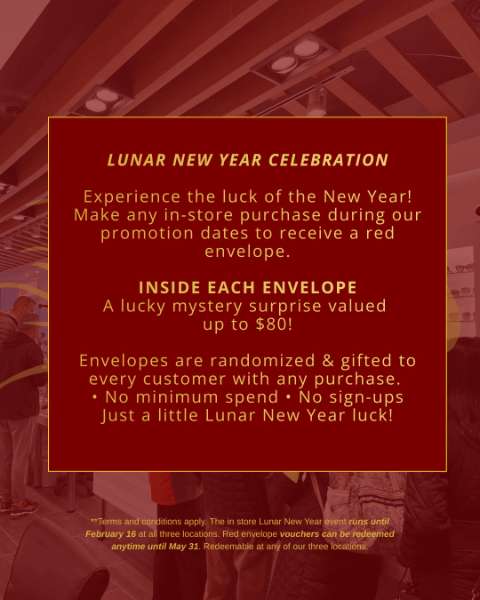Celebrate Lunar New Year with a special red envelope gift at our stores! No minimum spend, exclusive surprises, and more. Visit us before February 16.