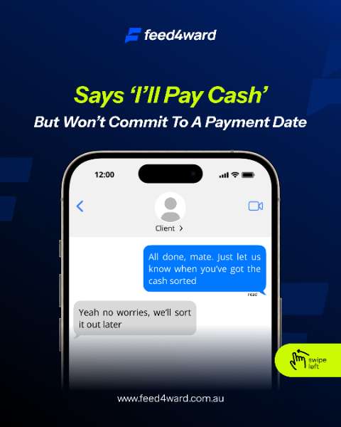 Late payments sting tradies—$500 deck, $2,000 fit-out, cash gone. Clients confuse or yell. Reminders help late, courts cost $95, collectors take 30%. Feed4Ward shares real feedback—skip bad jobs.