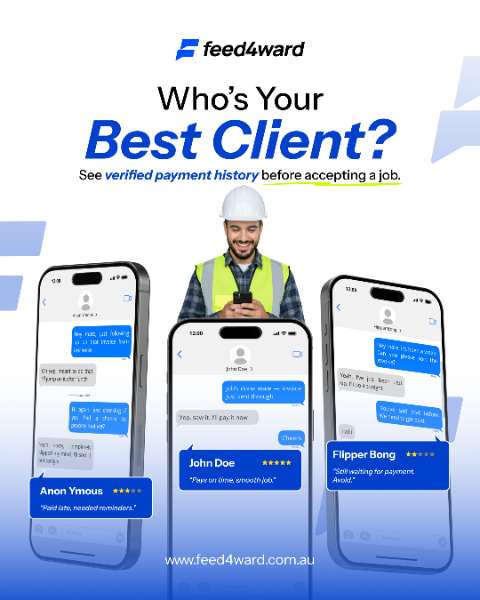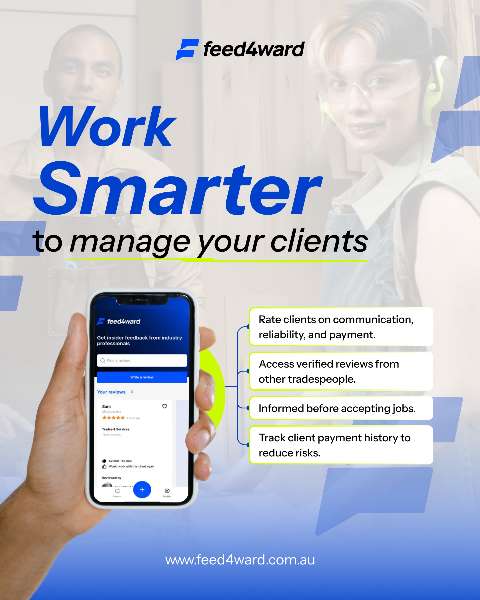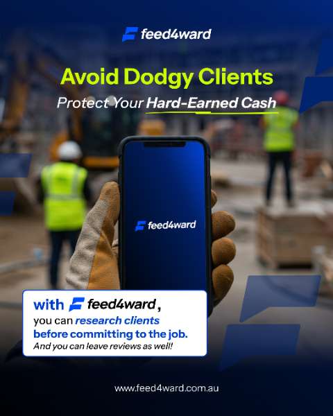 Connect with Australia’s trades community on Feed4ward. Share and access honest reviews about clients to avoid risks and ensure successful projects.