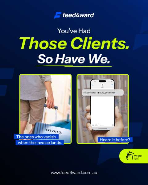Late payments sting tradies—$500 deck, $2,000 fit-out, cash gone. Clients confuse or yell. Reminders help late, courts cost $95, collectors take 30%. Feed4Ward shares real feedback—skip bad jobs.