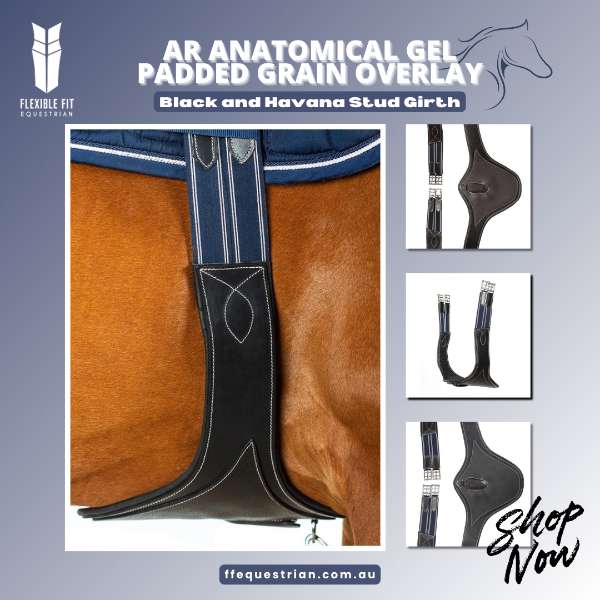 Discover the ultimate in equine comfort and protection with our AR Anatomical Gel Padded Grain Overlay Girth - by FFEquestrian