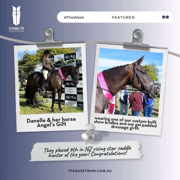 Meet Danelle and the magnificent Angel’s Gift, shining bright in our custom-built show bridle and gel padded dressage girth - by FFEquestrian