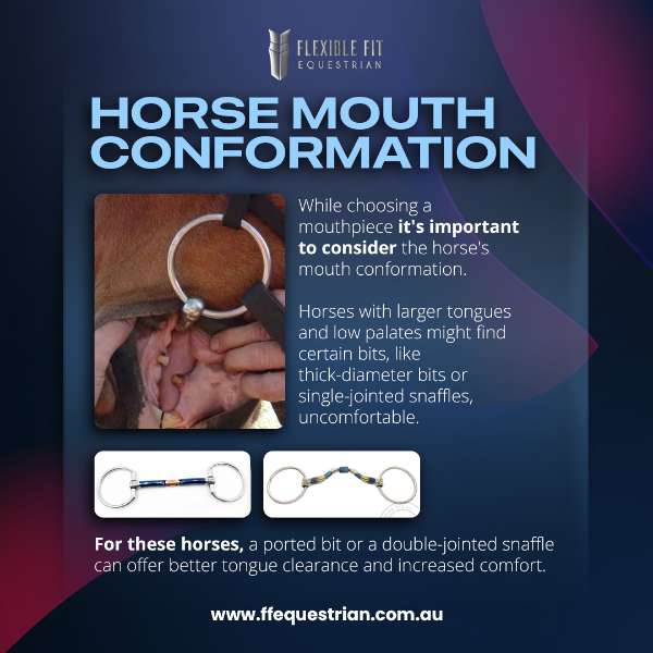 When selecting a mouthpiece for your horse, it's essential to consider both your training preferences and the unique conformation of your horse's mouth by FFEquestrian