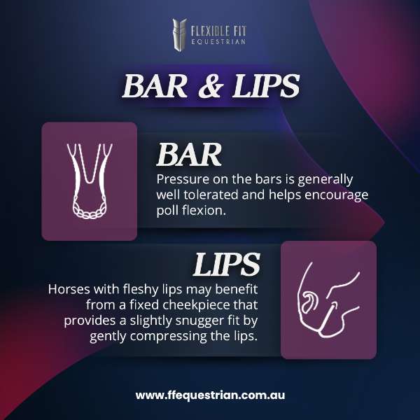 Bar pressure encourages poll flexion, while the bit position and type can affect pinching and tongue pressure by FFEquestrian