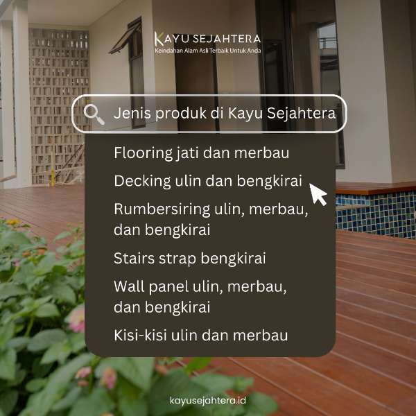 Pilih material lantai yang tepat untuk rumahmu: Kenali perbedaan antara Kayu Merbau, Ulin, dan Jati. Pilih dengan bijak untuk keindahan yang tahan lama dan berkelanjutan.