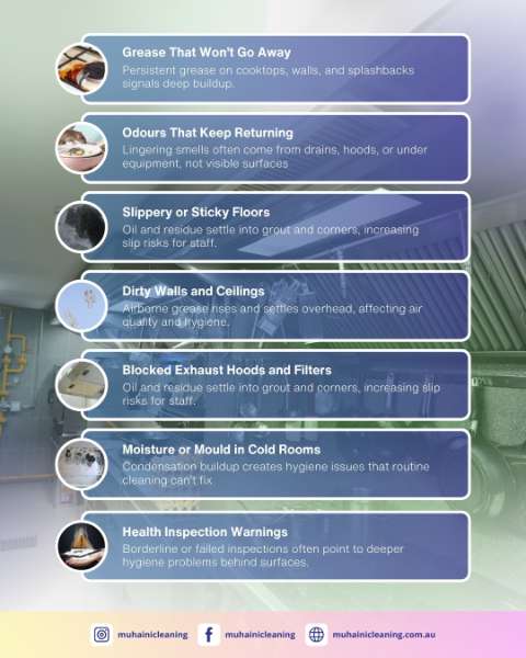 Noticing grease, odours, or slippery floors? Learn the 7 clear signs your commercial kitchen needs professional deep cleaning to stay safe and compliant.