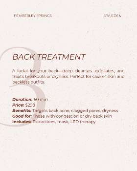 Indulge in luxurious body treatments at Pemberley Springs. From exfoliation to heat therapy, relax and rejuvenate with our signature services.