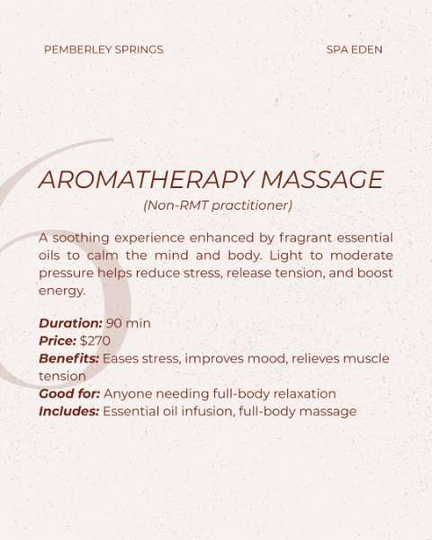 Experience ultimate relaxation with our luxurious body massages at Pemberley Springs. Choose from aromatherapy, deep tissue, hot stone, and prenatal options.