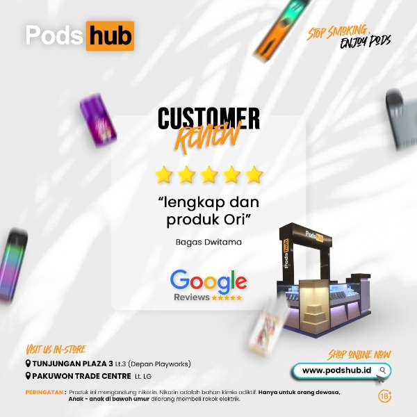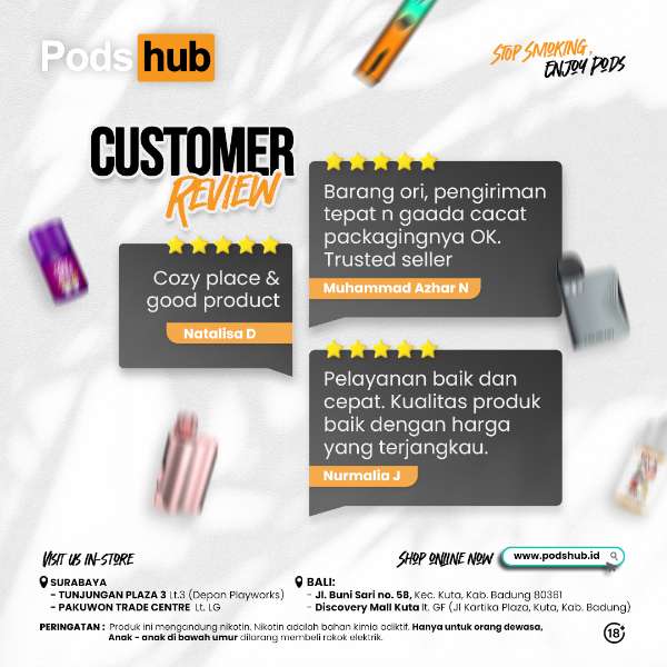 PODS HUB menjual rokok elektrik POD berkualitas baik dari brand lokal dan internasional, dengan harga terjangkau dan layanan unggulan, tersedia di toko online dan offline di Tunjungan Plaza, Surabaya.