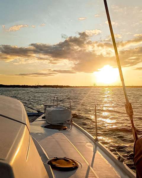 Jemme, a 43 ft Fountaine Pajot catamaran, offers luxurious sailing with 4 en-suite cabins, accommodating up to 14 guests for day cruises and 6 overnight. It features ample deck space, modern amenities, and a range of aquatic activities.