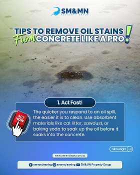 Learn expert methods for oil stain removal from concrete driveways and factory floors. Professional advice from SM&MN Cleaning Experts in Melbourne.