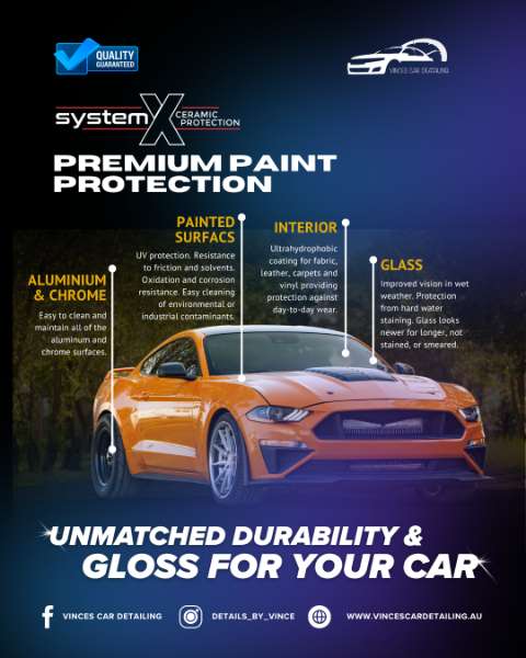 Protect your vehicle with System X ceramic coatings at Vince's Car Detailing in Sydney. Premium paint protection for lasting gloss and durability