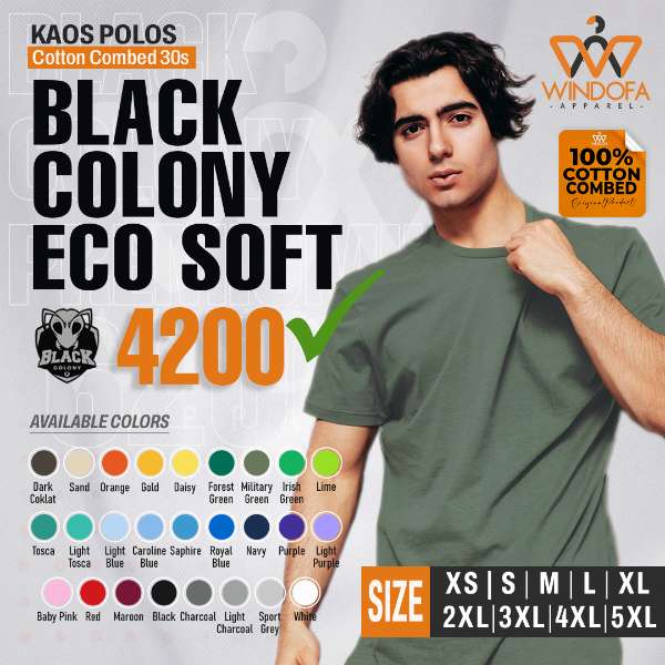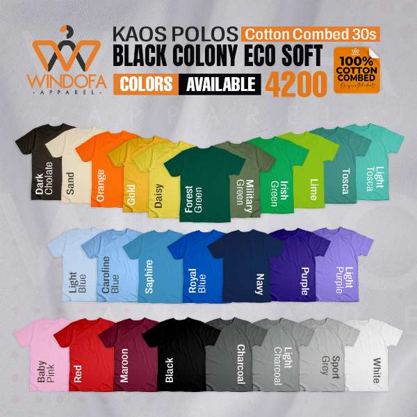 kaos polos cotton combed 30s black colony eco soft 4200 nyaman dikenakan di badan serta memilki banyak warna dengan harga terjangkau tetap stylish dapatkan kaos tersebut di berbagai channel pembelian