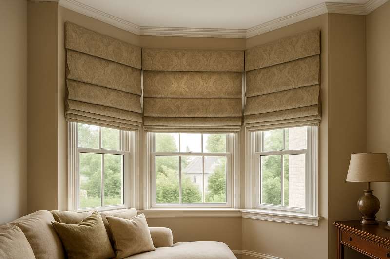 These multi-faceted windows require treatments that can accommodate their unique shape. Custom-fit Roman shades or individual panels can be tailored to each section, ensuring a cohesive look. Alternatively, a continuous valance with side panels can frame the window beautifully.