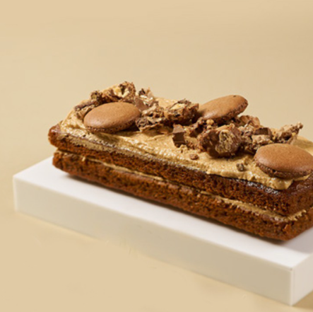 Lapisan cake pisang/banana cake dan krim biscoff, ditambah topping macarons cokelat dan remahan cokelat Ferrero Rochers memberikan rasa cokelat yang kaya dengan berbagai tekstur dalam tiap gigitannya. Banana Biscoff Cake by Igor's Pastry Surabaya cocok untuk dinikmati bersama buah hati terkasih ataupun sebagai oleh-oleh untuk rekan sejawat.