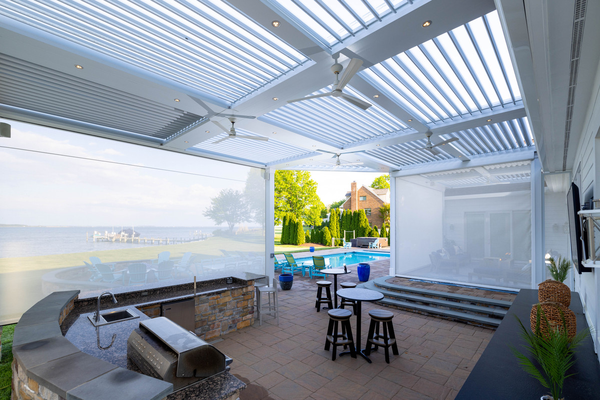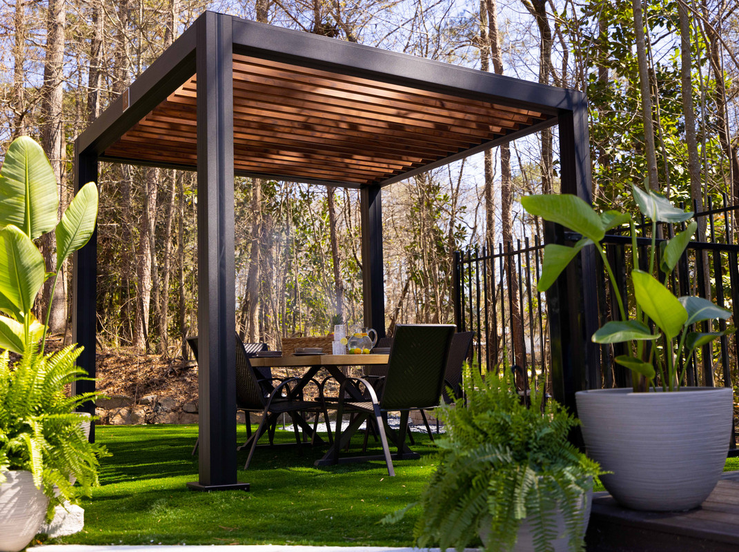 Motorized Louvered Roof: The 6-inch louvers offer a 170° range of motion, allowing you to control sunlight and shade with the touch of a button.