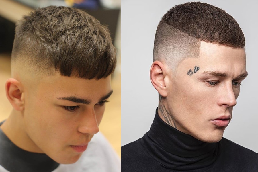 If a men’s haircut has been in style since the days of Roman emperors, one can safely assume its status won’t be changing anytime soon. Distinguished by short layered hair with a tight horizontal fringe, the Caesar Cut conjures associations with power and authority. To give this centuries-old haircut a modern upgrade, incorporate a fade around the sides.